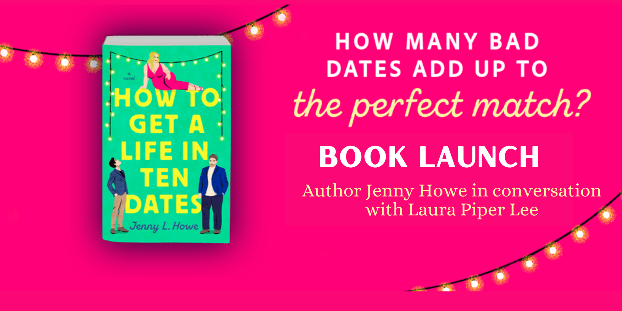The Purple Couch Bookshop is thrilled to welcome back author Jenny Howe to celebrate the release of her new book, How to Get a Life in Ten Dates. Joining her in conversation will be author of Hannah Tate Beyond Repair, Laura Piper Lee. Your ticket price